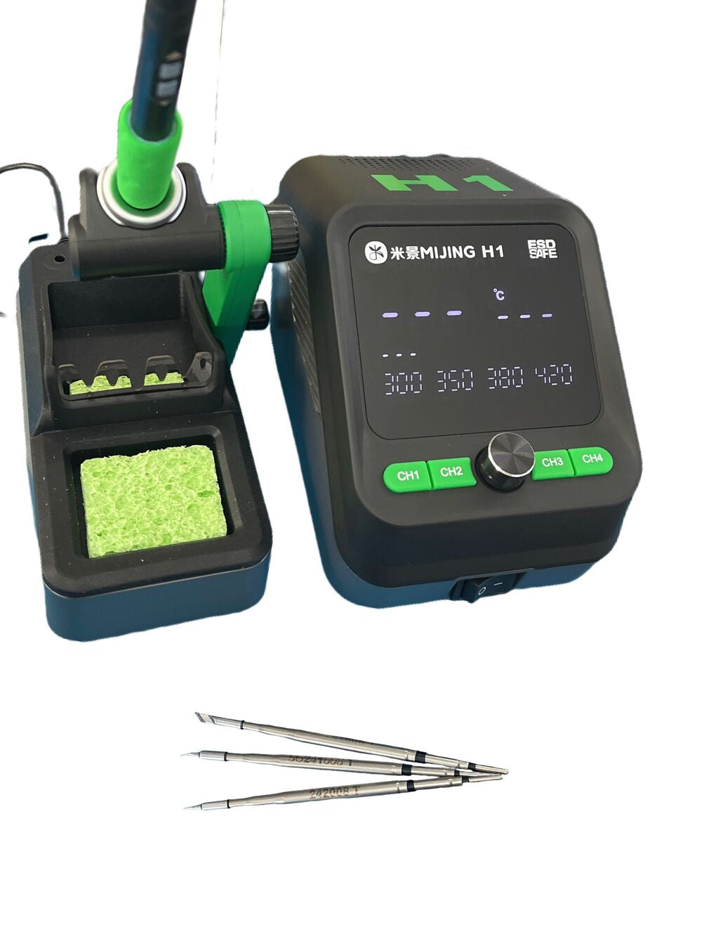 La estación de soldar Mijing H1 ofrece un control preciso de temperatura en su maneral C210, con un rango ajustable de 100 a 450ºC, ideal para trabajos que requieren alta precisión. Cuenta con 4 canales de memoria para guardar configuraciones personalizadas y viene equipada con 3 puntas C210, facilitando la versatilidad en distintas aplicaciones. Su potencia de 160W garantiza un calentamiento rápido y eficiente, mientras que su diseño sin plomo asegura un uso seguro y respetuoso con el medio ambiente. Una herramienta profesional para trabajos exigentes en soldadura y reparación electrónica.