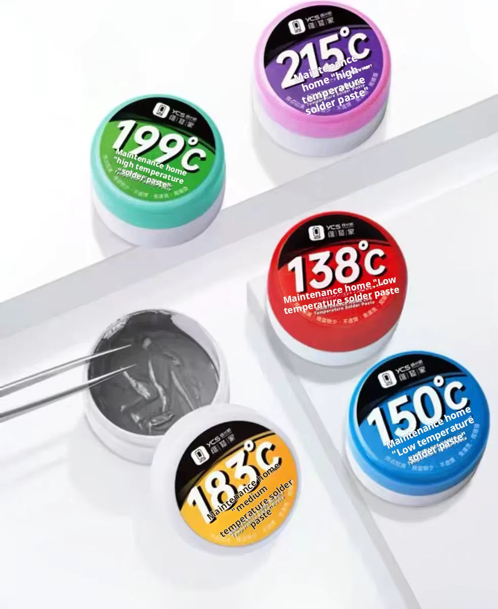 La soldadura en pasta YCS ofrece una alta calidad gracias a sus diversas aleaciones adaptadas a múltiples aplicaciones. Su fórmula en pasta facilita una aplicación precisa y eficiente, ideal para trabajos profesionales que requieren uniones fuertes y confiables